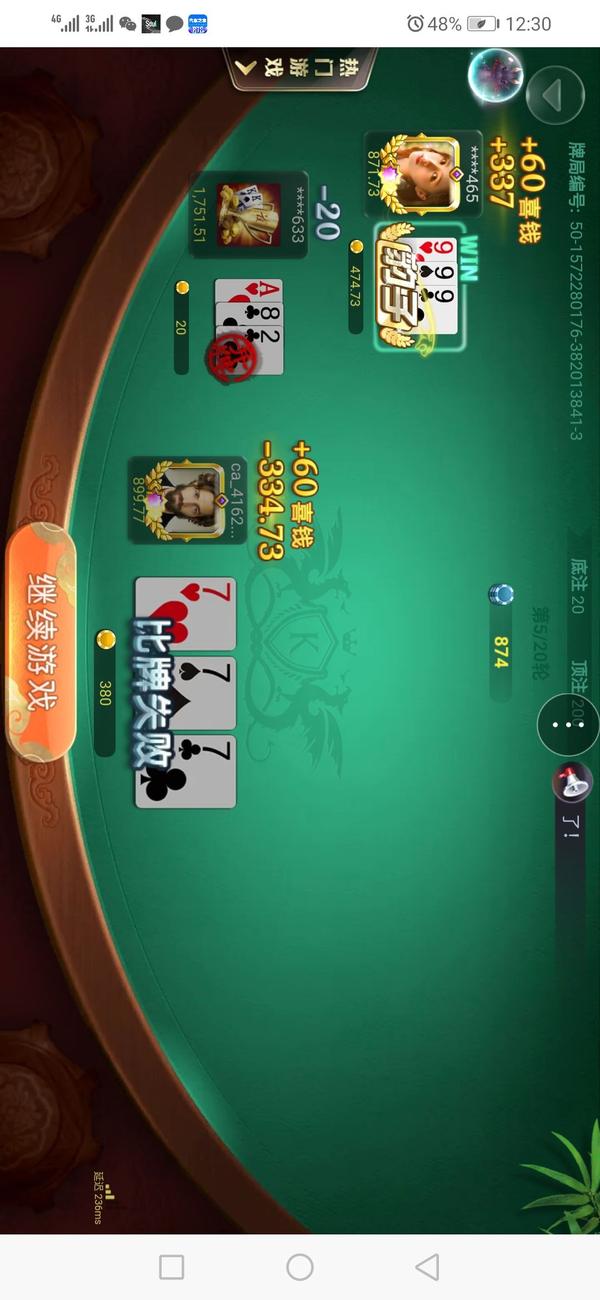 醒醒吧,就在刚刚炸金花,豹子7遇到豹子9。